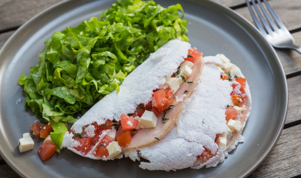 TAPIOCA COM TOMATE E QUEIJO FRESCO